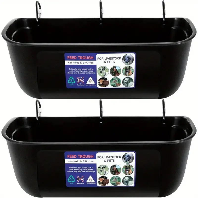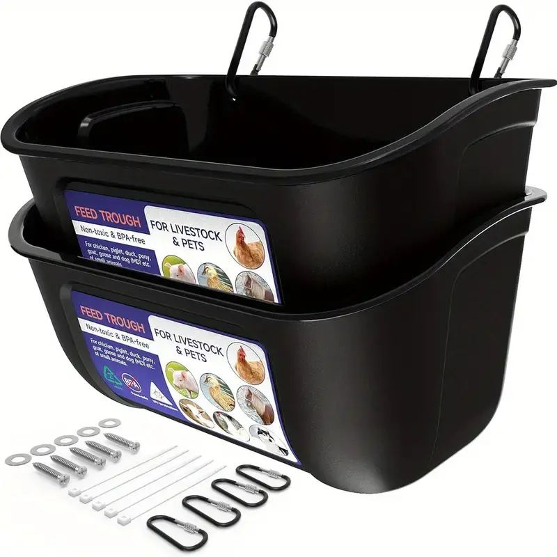 Durable Plastic Trough Bucket with Clips for Hanging or Screw-in Fence Mount