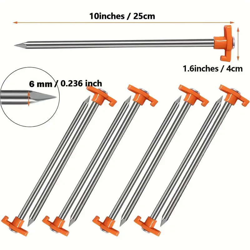 10pcs Premium Stainless Steel Heavy-Duty Tent Stakes