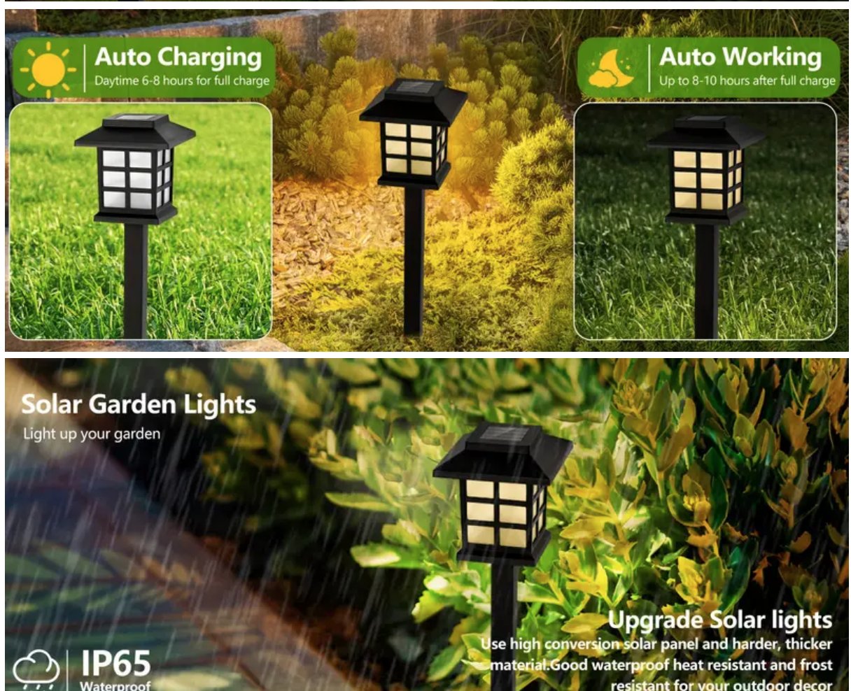 12 Pack LED Solar Outdoor Lights Pathway Waterproof Lighting Garden Lights Yard, Warm Lightt/White Light