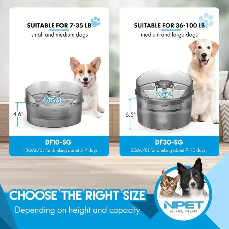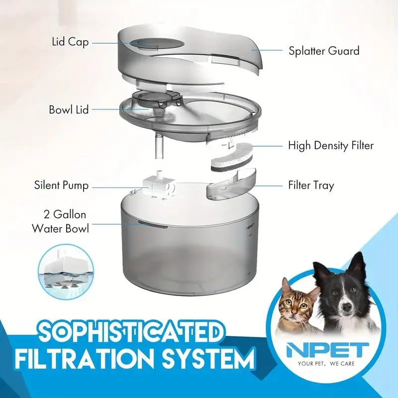 2 Gallon/270oz/8L Large Capacity NPET DF30 Automatic Dog Water Fountain Dispenser
