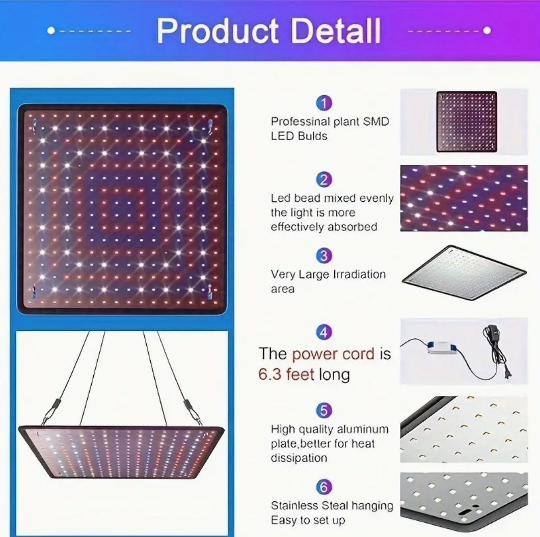 2 Pack LED Grow Light Panel 200W Lamp For Indoor Plants, Full Spectrum With White Blue Red UV IR LEDs For 4x4ft Coverage Grow Tent Greenhouse Veg And Bloom Seedlings Hydroponics 600W
