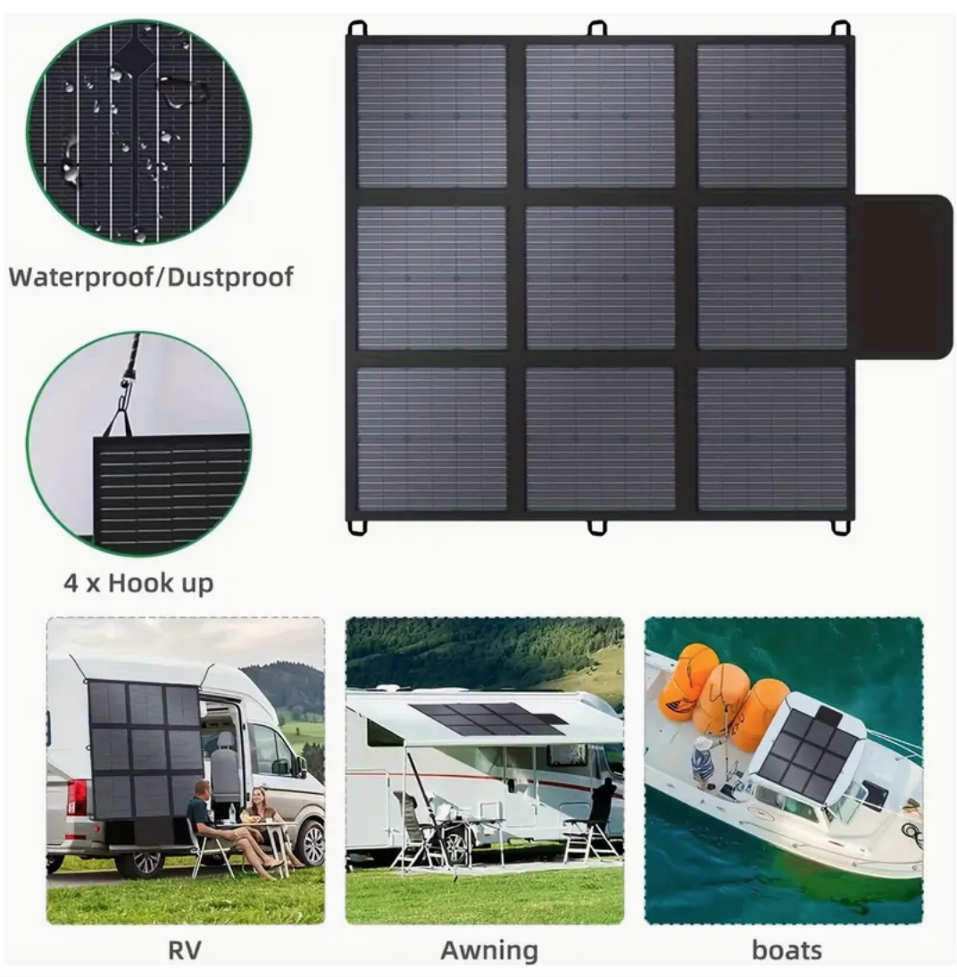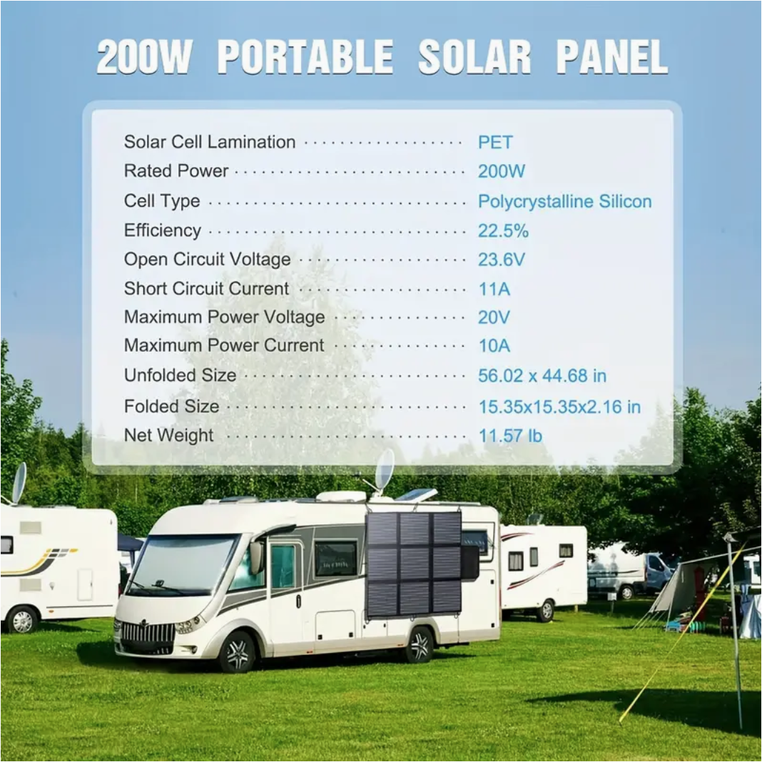 200W High-Efficiency Foldable Solar Panel Kit - Portable Solar Charger for RV, Marine, Laptop, and Solar Generator - Ideal for Van Camping, Off-Grid Adventures, and Emergency Power Outages.