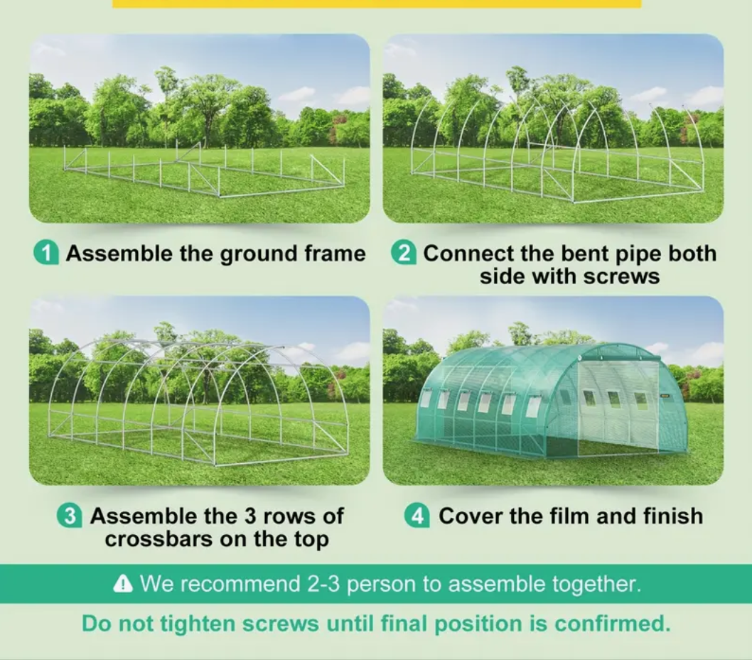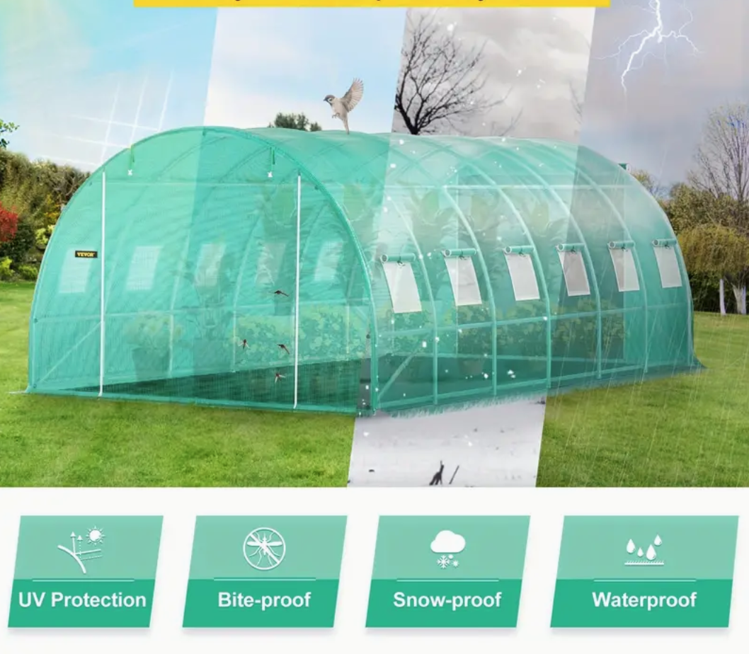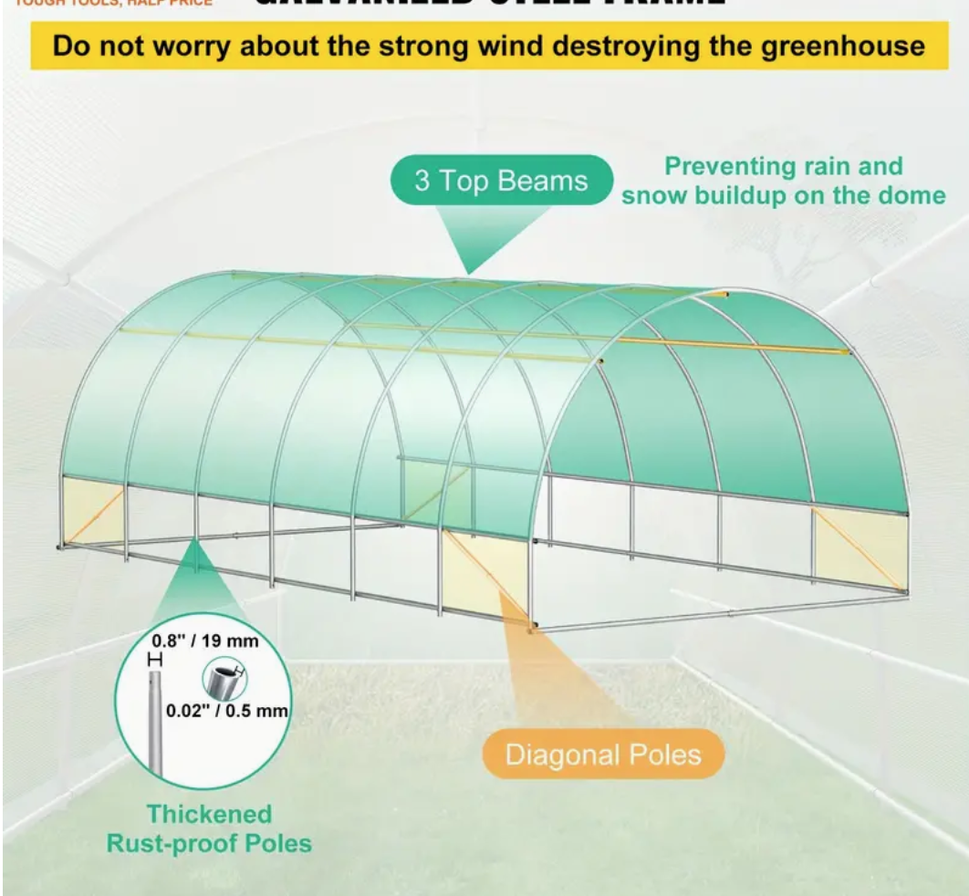 20 x 10 x 7 ft Portable Walk-in Tunnel Greenhouse - Other Plant Growing Accessories with Galvanized Steel Hoops, 3 Top Beams, Diagonal Poles, 2 Zippered Doors, 12 Roll-up Windows, and Durable Green Cover for Outdoor Gardening