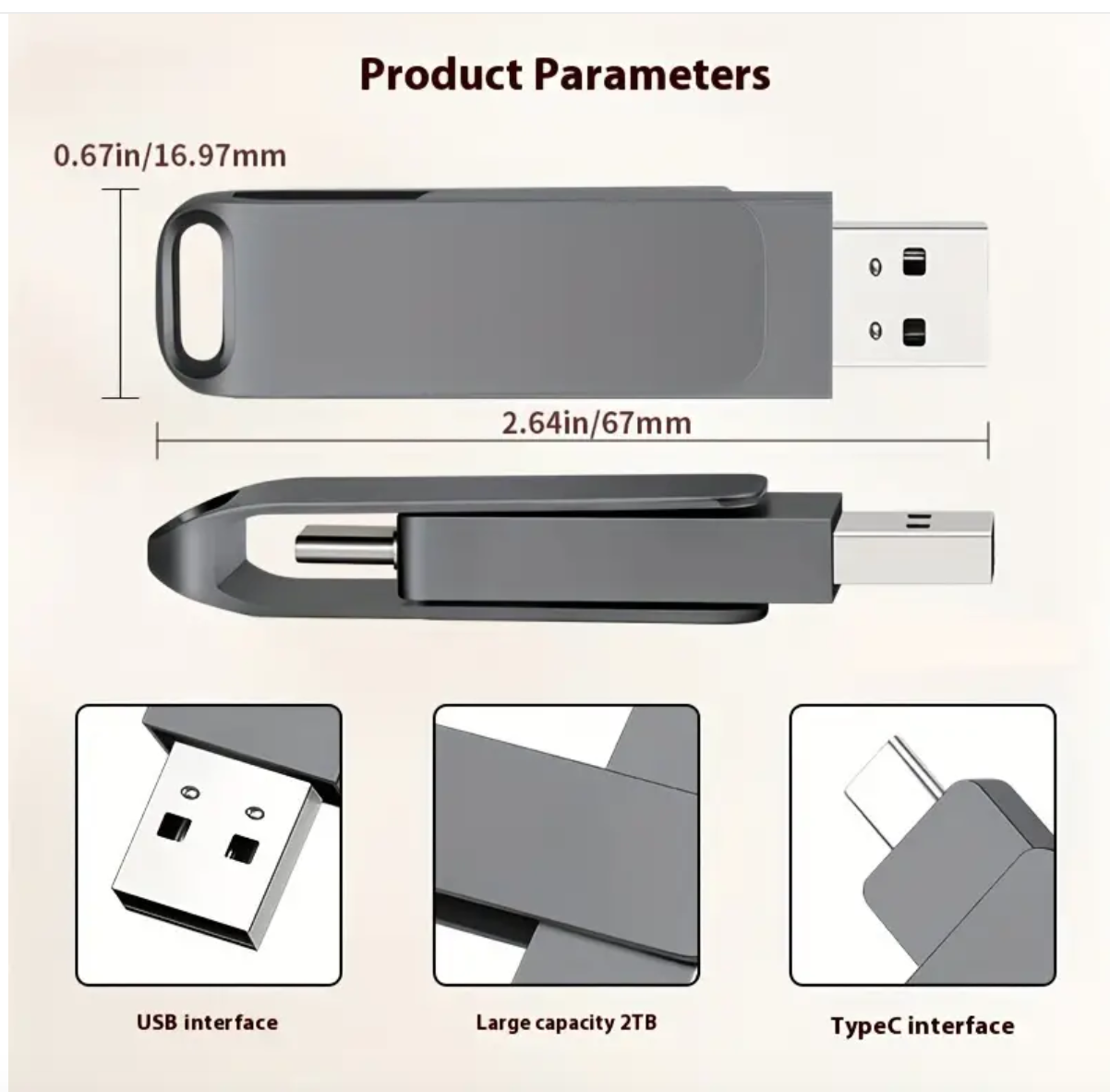 Large Capacity 2TB USB Flash Drive Type-C Dual Interface Mobile Phone and Computer Dual-use Compatible with Most Electronic Devices - Plug and Play Reading and Writing Speed Efficient Transfer Thumb Drive 2TB Memory Stick 2000GB U Disk 2TB 360° Rotating Metal Style Keychain Design Is Safe and Waterproof, Lightweight and Portable, Suitable for Various Occasions Such As Business, Office, Study and Entertainment