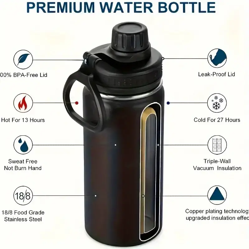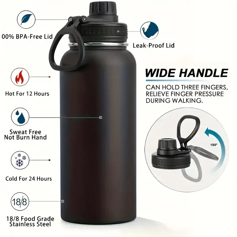 32oz Stainless Steel Double Wall Vacuum Wide Mouth Sports Bottle
