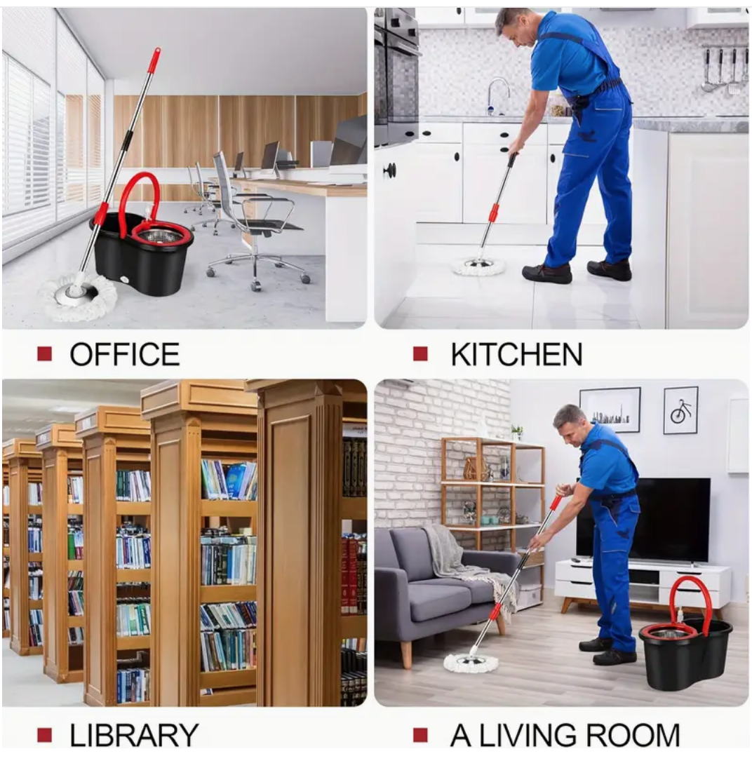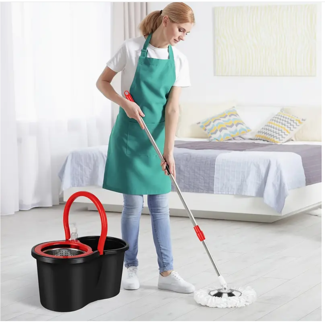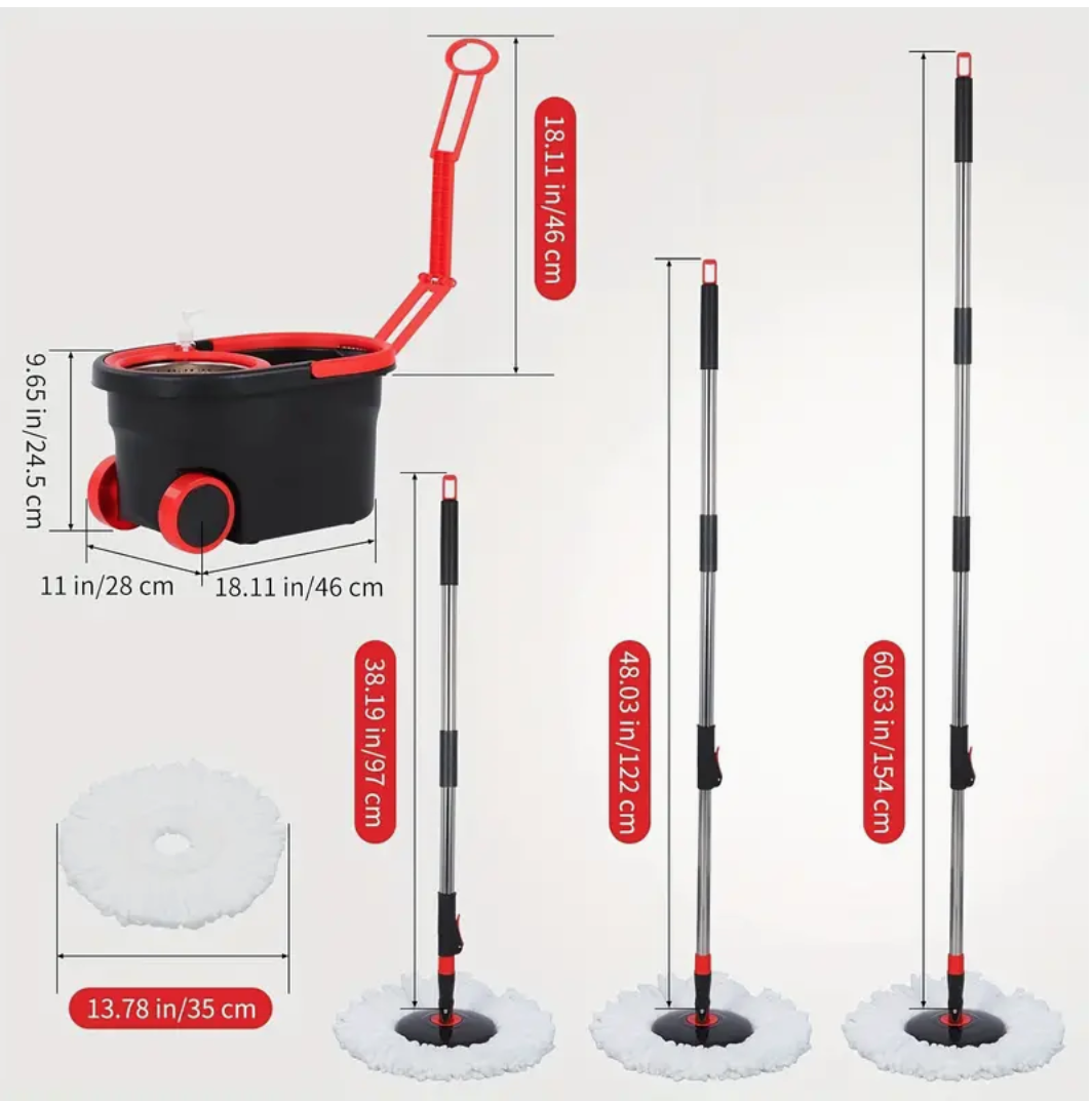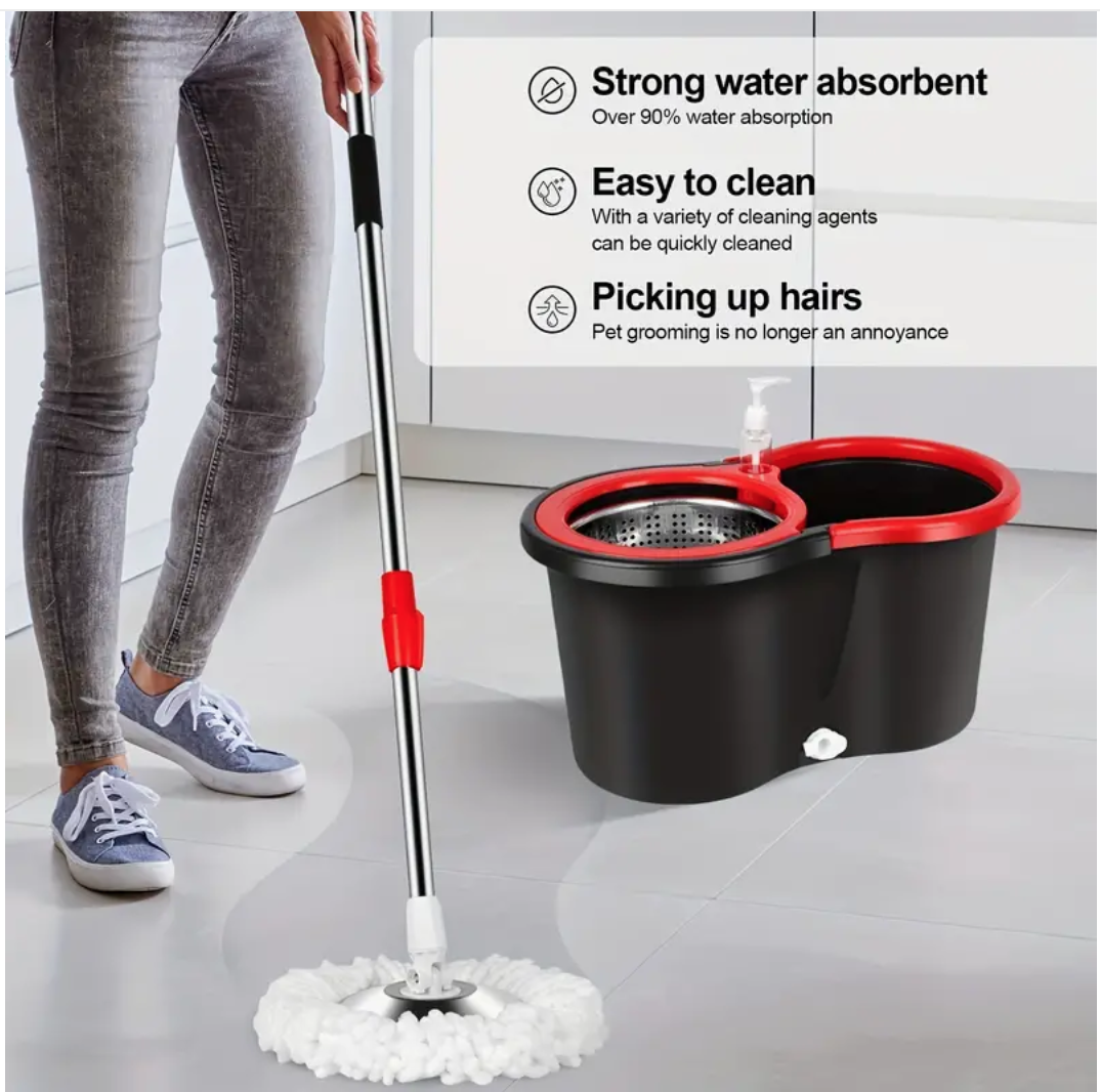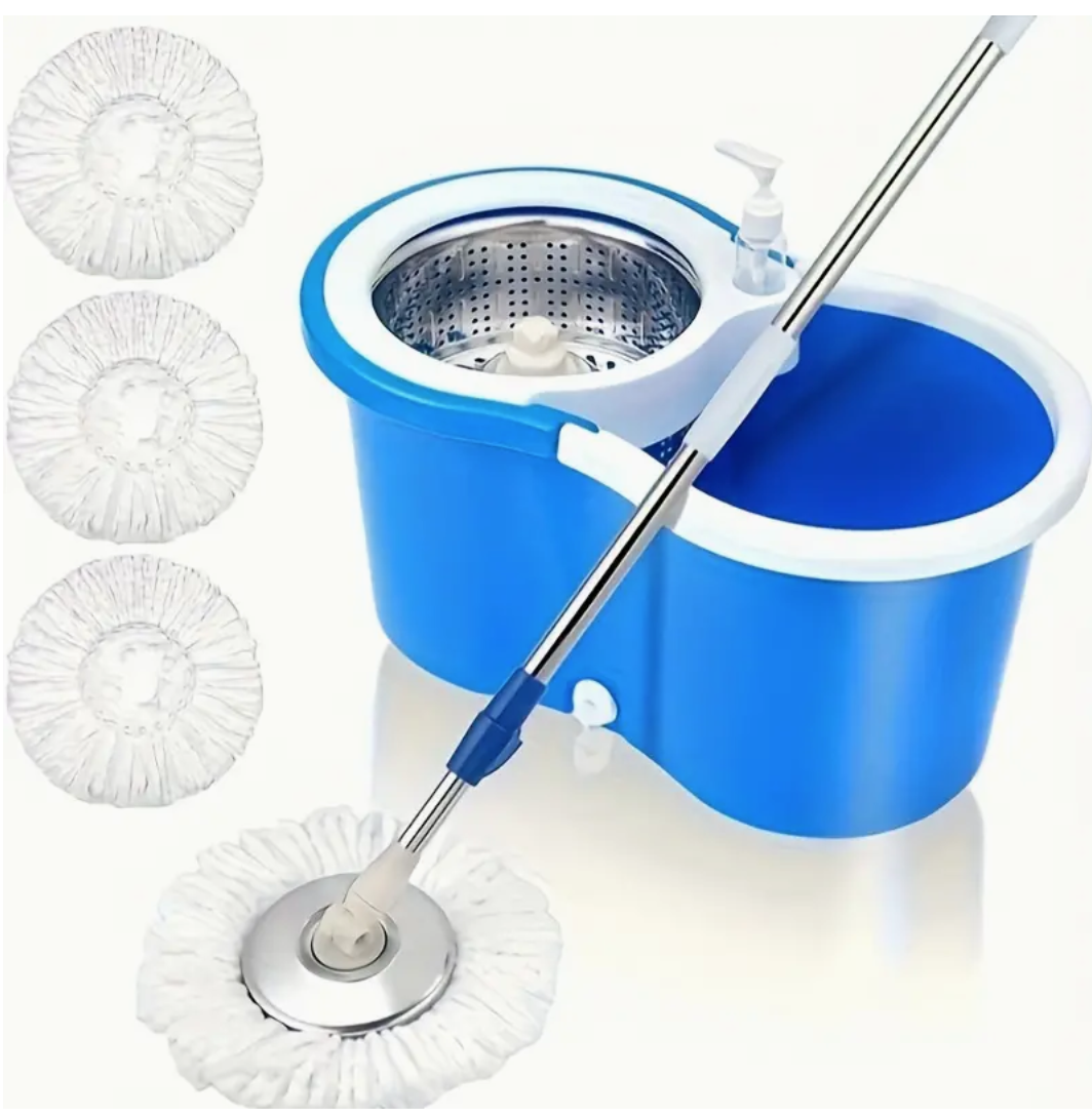 360° Spin Mop And Bucket Set - Drums With 3 Microfiber Mop Heads, 61" Stainless Steel Adjustable Handle, Bucket Floor Cleaning System For School And Bathroom Cleaning