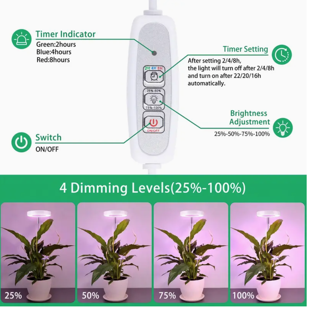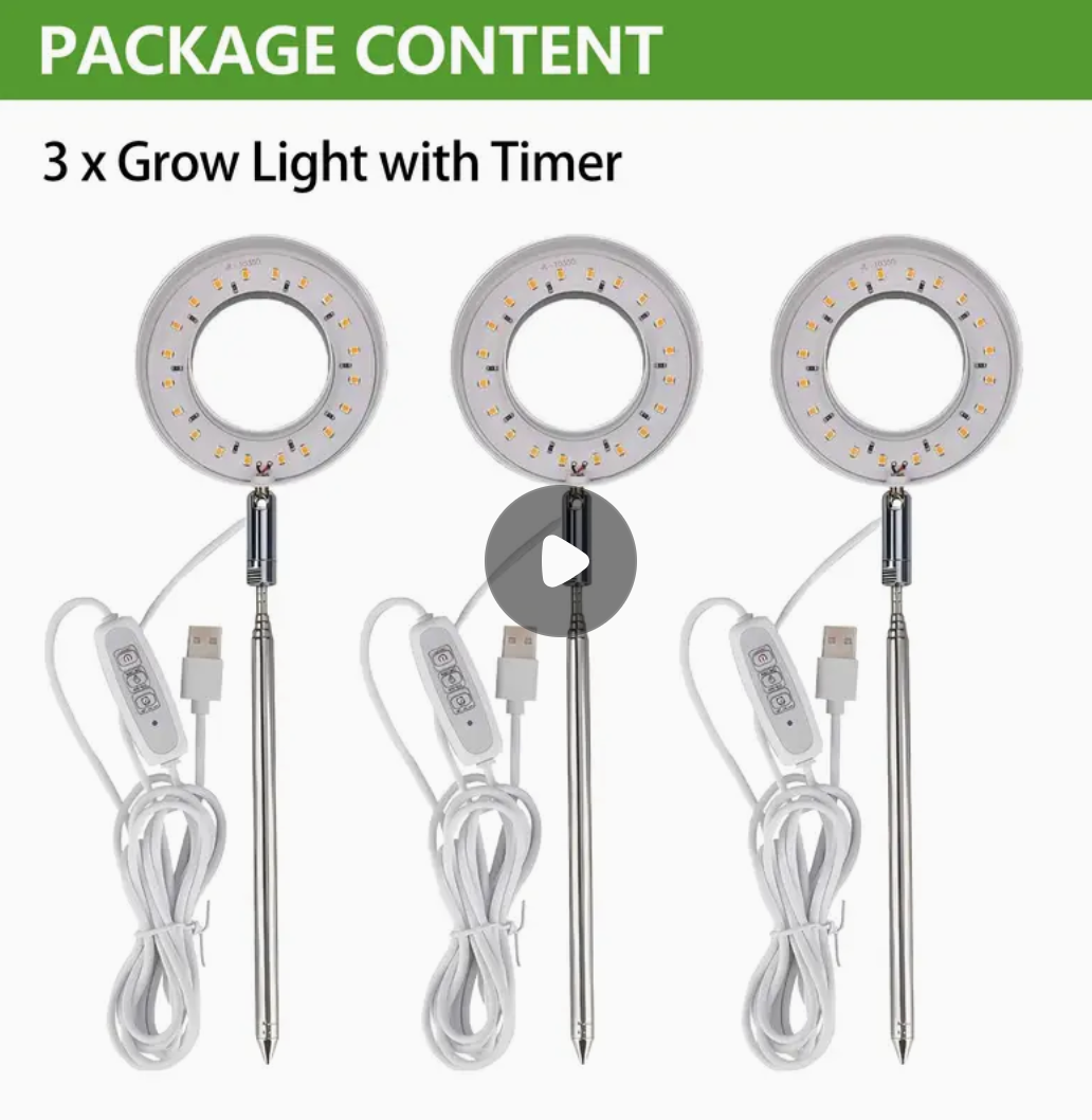 3PCS LED Full Spectrum Grow Light, Adjustable Desk Plant Lamp with Automatic Timer (2H/4H/8H), 4 Dimmable Levels, Height Adjustable 8"-26" for Indoor Plants Growing