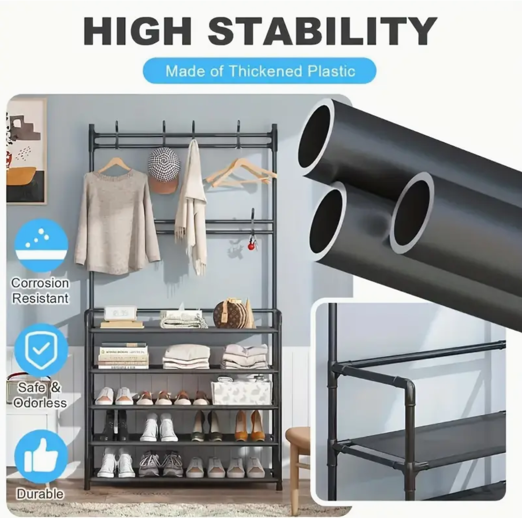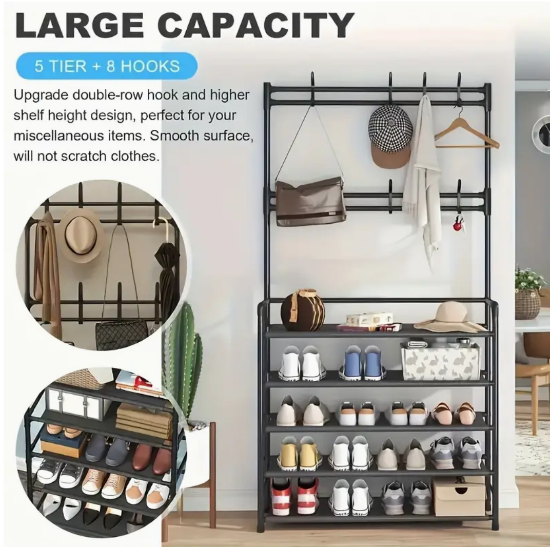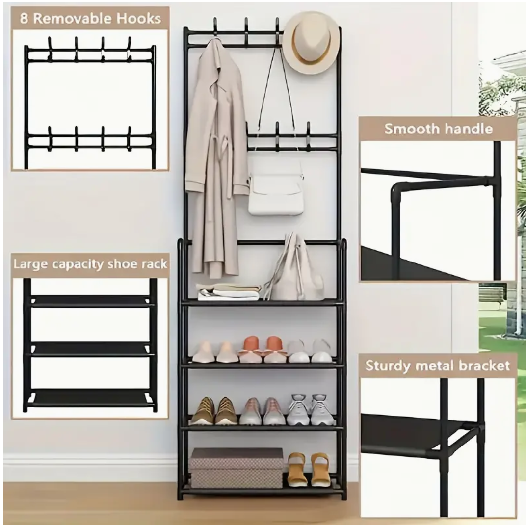 4/5 Layer Multi-functional Metal Coat Rack with 8 Double Hooks - Space-Saving Storage Solution for Entryway, Living Room, Bathroom, and Corridor
