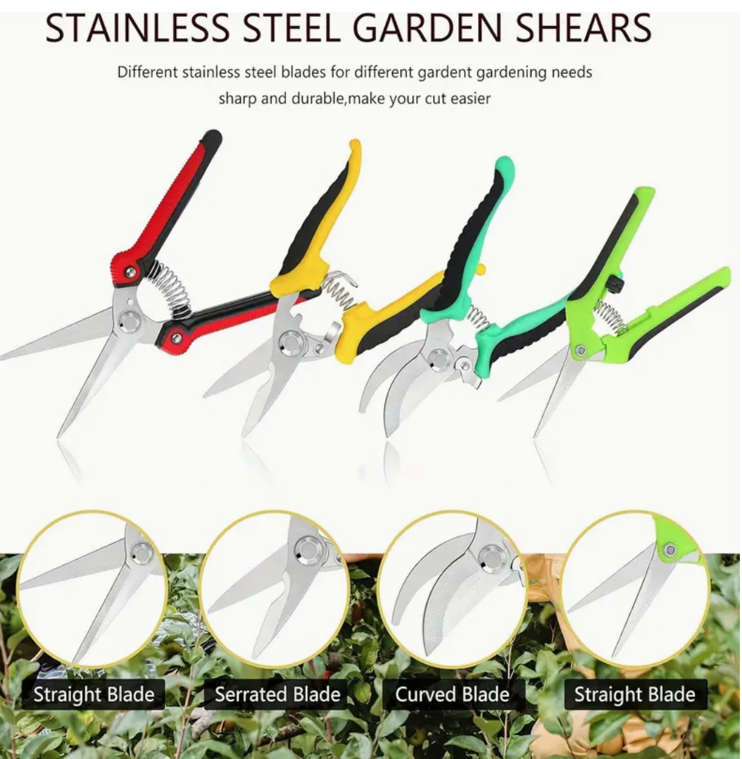 4pcs Stainless Steel Garden Pruning Shears Set - Versatile Gardening & Lawn Care Tools for Trimming Branches, Fruits & More (Colors Vary)