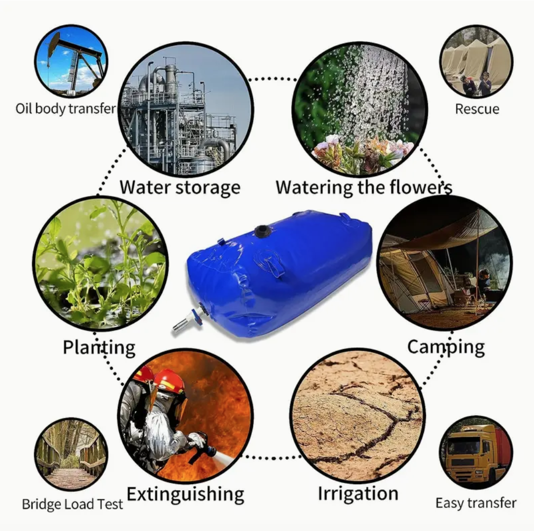 Wide In Application: Allows For Broad Utilization For Outdoor, Home, Garden, Camping, RV, Drought Relief, Firefighting, Agriculture And More. Convenient Carrying: When Not In Use, You Can Easily Fold The Empty Bladder Container Into A Smaller Size For Convenient Storage And Carrying.