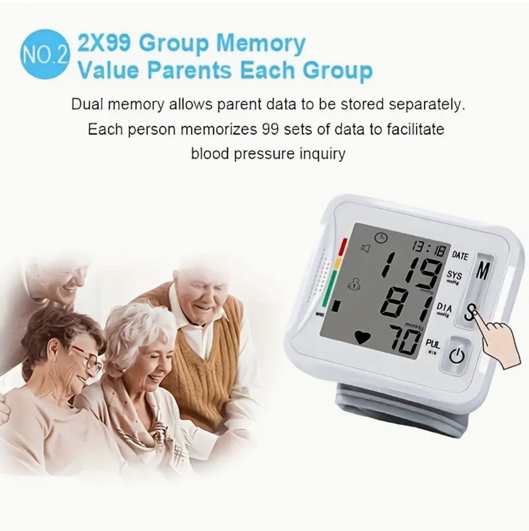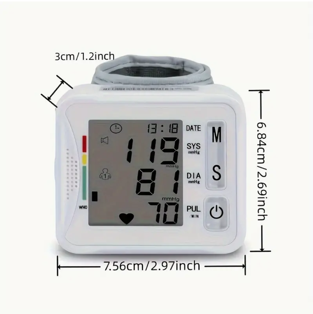 TAIKON Wrist Blood Pressure Monitor - LCD Display, Adjustable Cuff with Irregular Heartbeat Detection, Battery-Powered (Batteries Not Included)