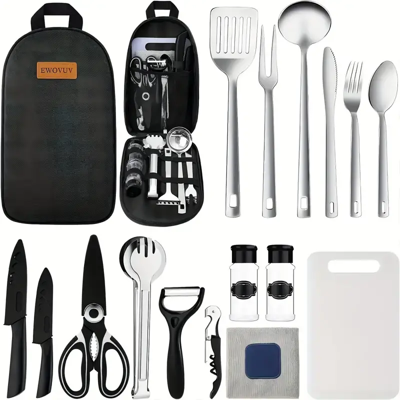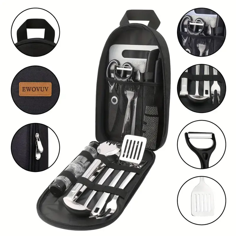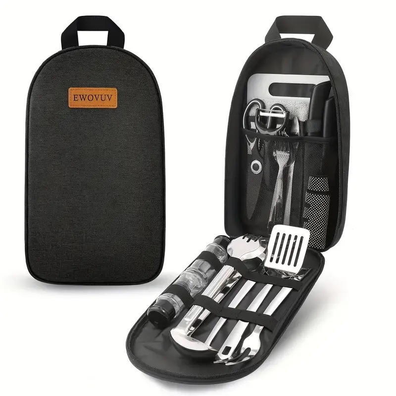 Travel Organizer, Grill Accessories, Backpacking, Travel Gear, Barbecue, Camping, Hiking, Travel Cookware Kit with Case