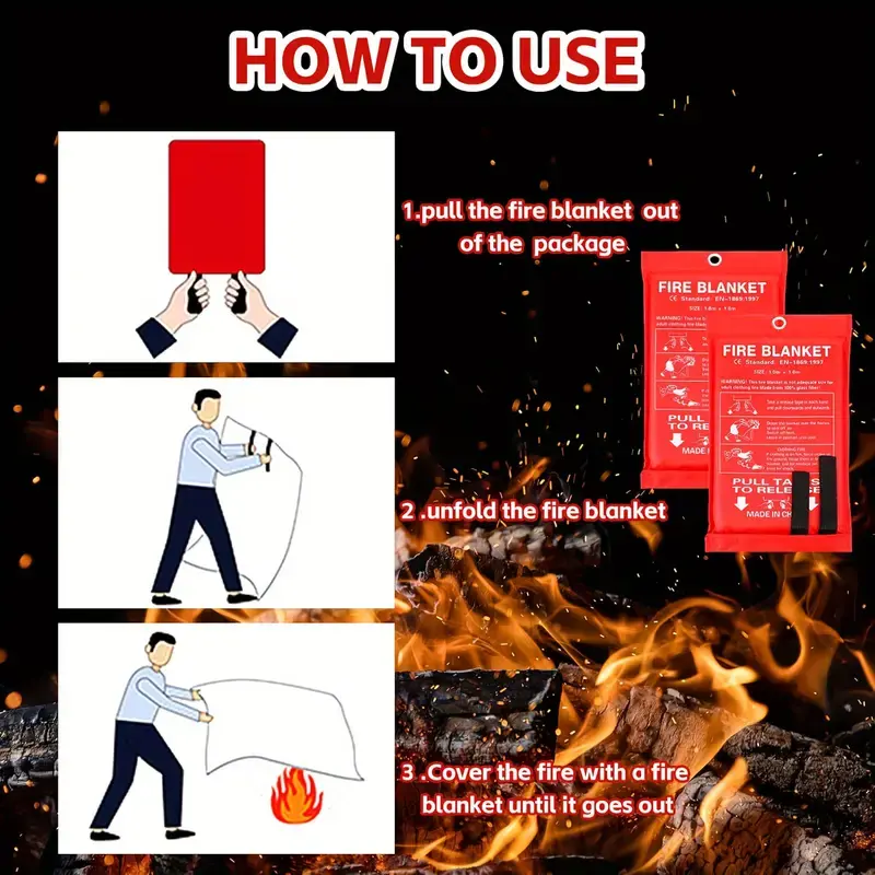 4 Packs of 39.37''x39.37'' Fiberglass Emergency Fire Blankets