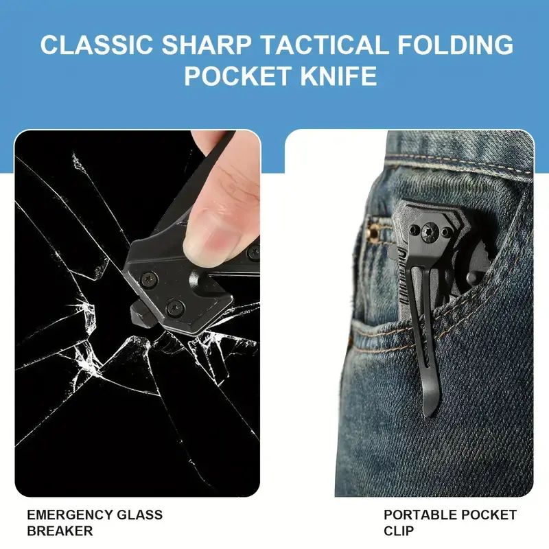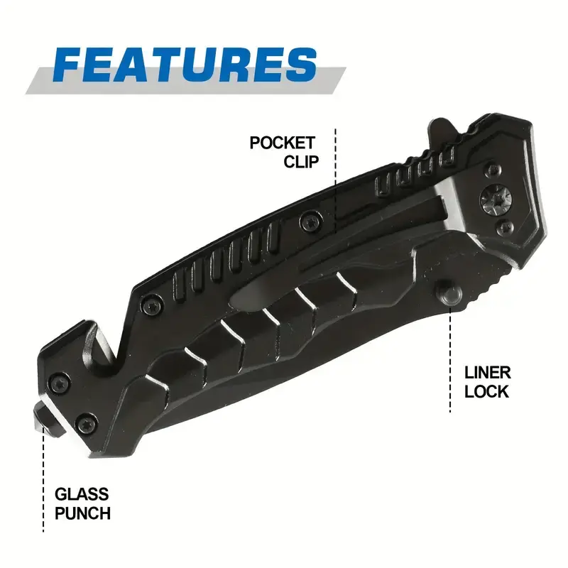 Folding Pocket Knife With Seat Belt Cutter, Glass Circuit Breaker, Bottle Opener