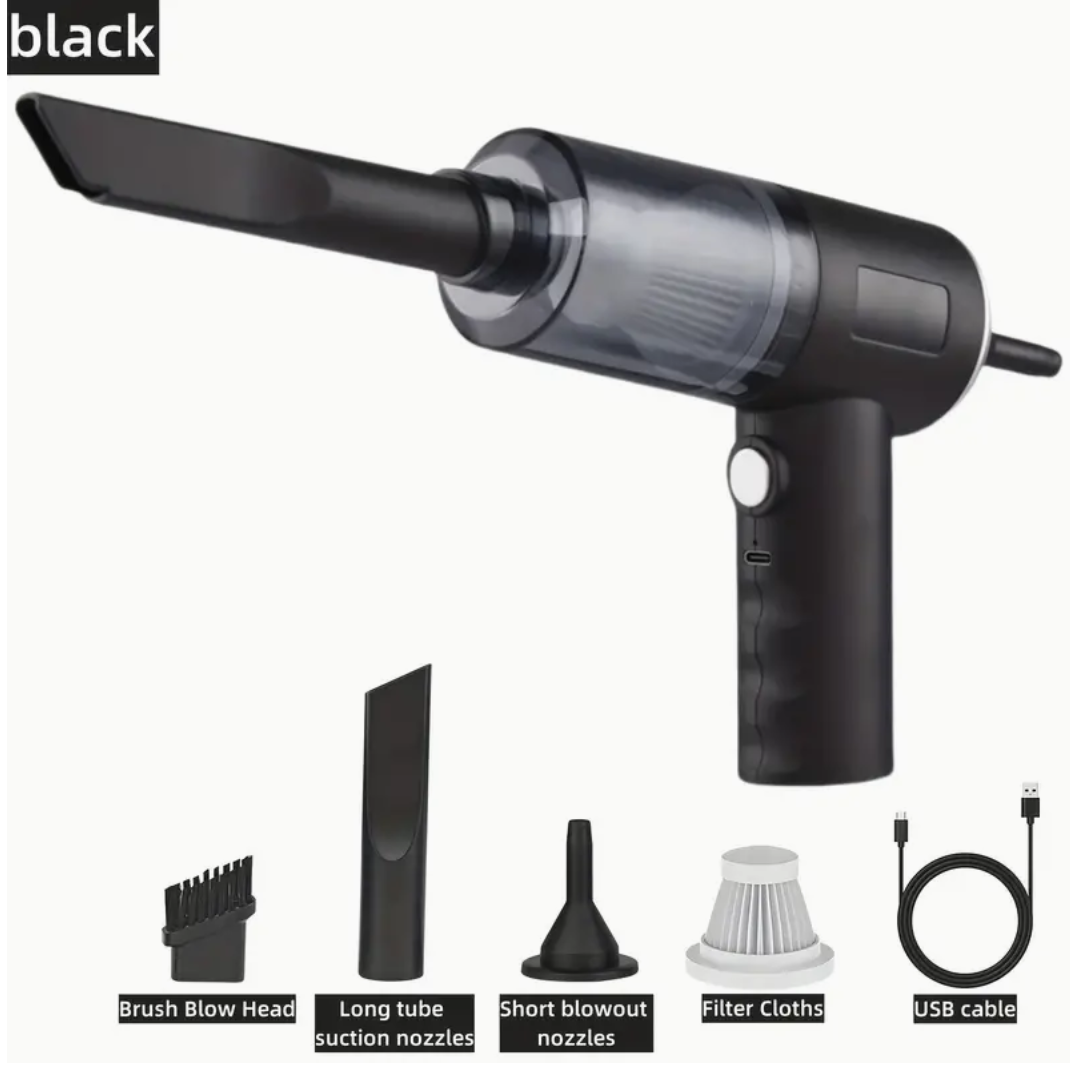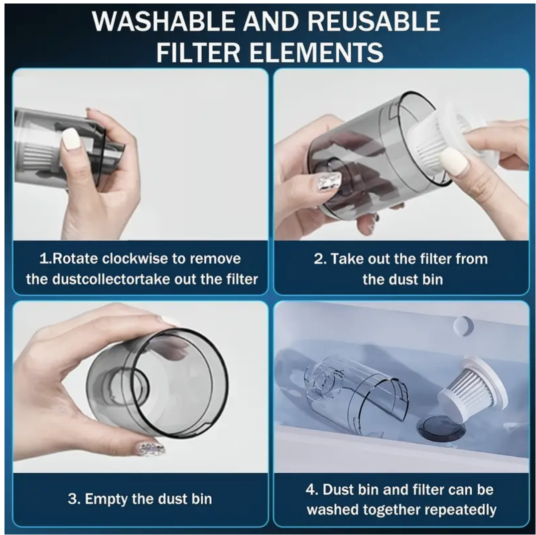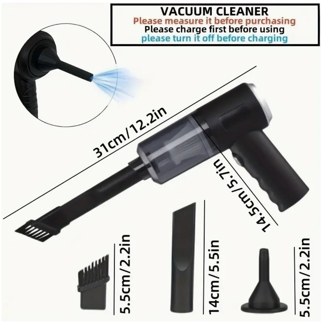 Compact Handheld Vacuum Cleaner with Side Brushes, Washable Cloth Filter, USB Rechargeable, Cordless, ABS Resin, Hair Anti-Tangle Feature, Blow & Suction, 200W Max, <3.38oz Dustbin, 1200mAh Lithium Battery, 40dB Quiet Operation, 3KPa Suction Power for Car, Home, Office, Pet Hair Cleaning