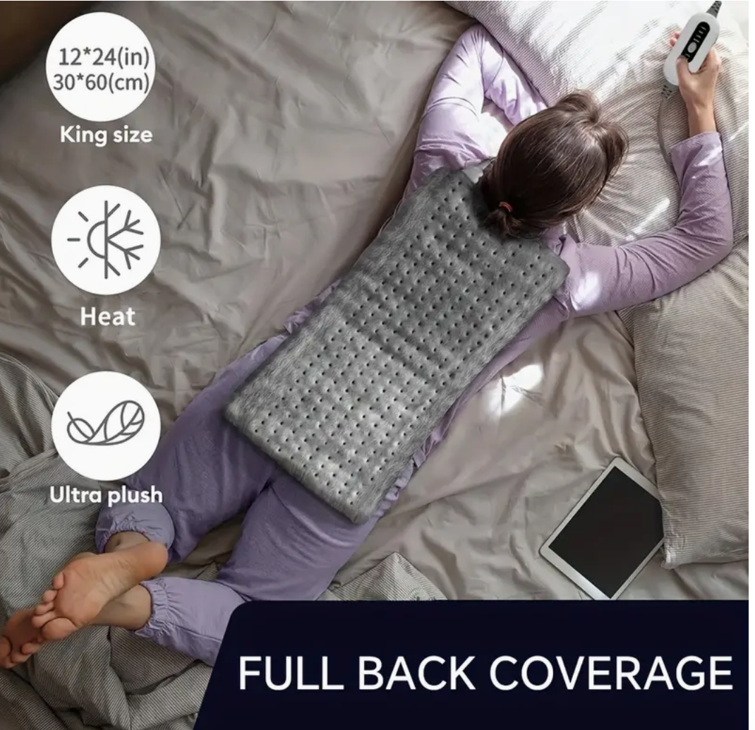 King Size Heating Pad For Back - 4 Heat Levels Up To 150°F & 2-Hour Auto-Off, 12x24 Inch, Soft Flannel, Machine Washable, Heat Pad For Neck & Shoulder, Knee, Leg, Electric Heating Pad