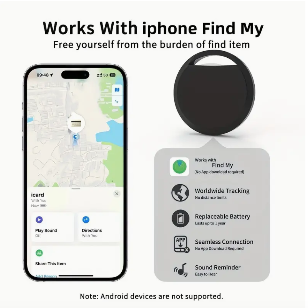 4-Pack GPS Smart Tracker Mini Tag, Compatible with IPhone Find My App, Air Tag Anti-Lost Reminder MFI Rated Locator, Suitable for Keys, Pets, Luggage - Non-rechargeable Battery Powered, Wireless, Battery Size ≥20mm (not (for Android)