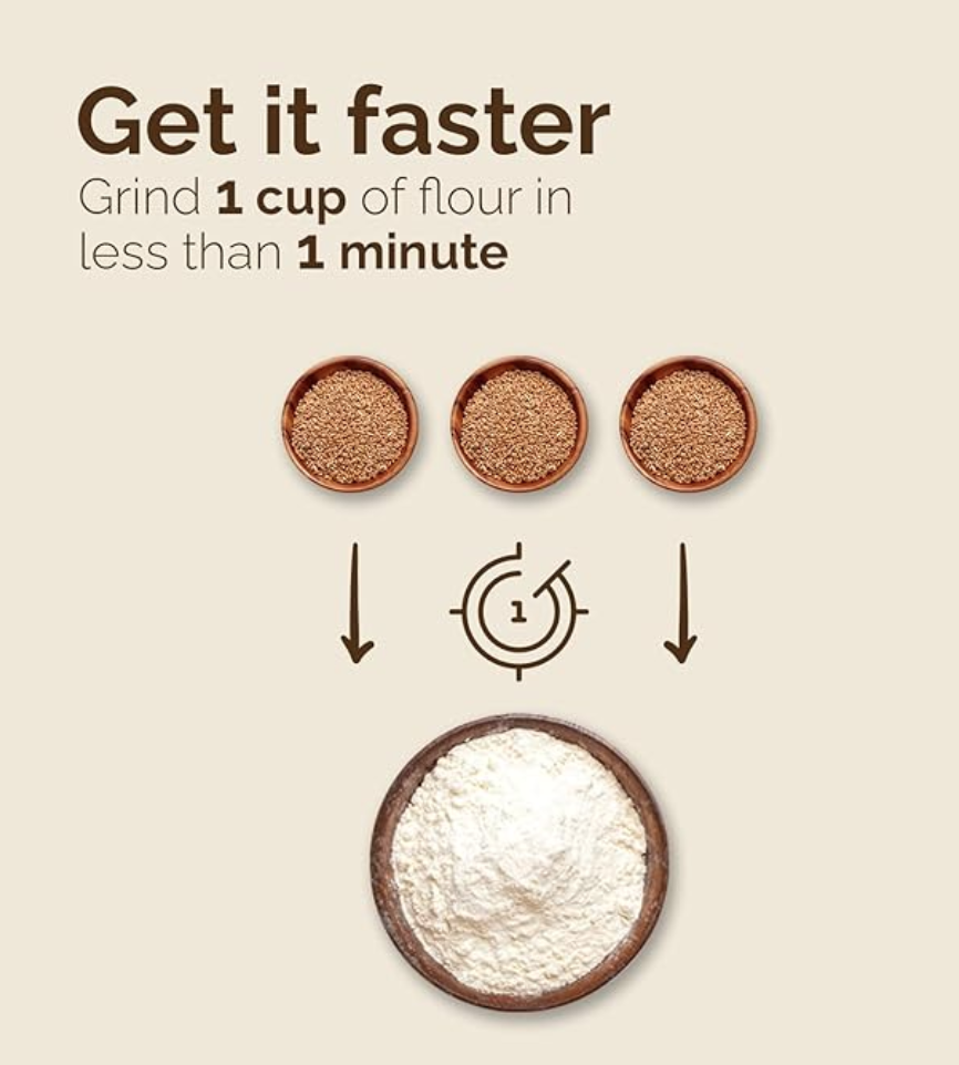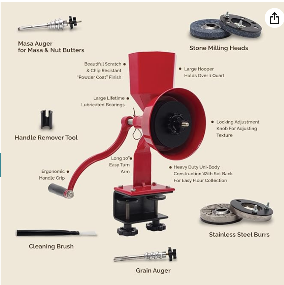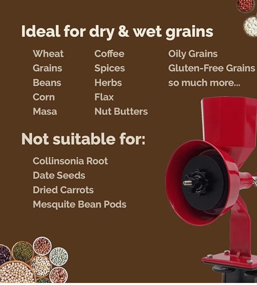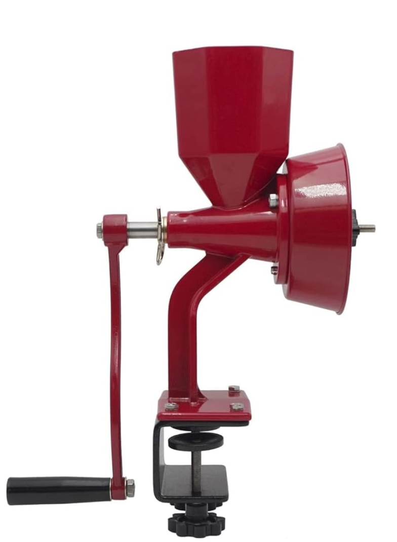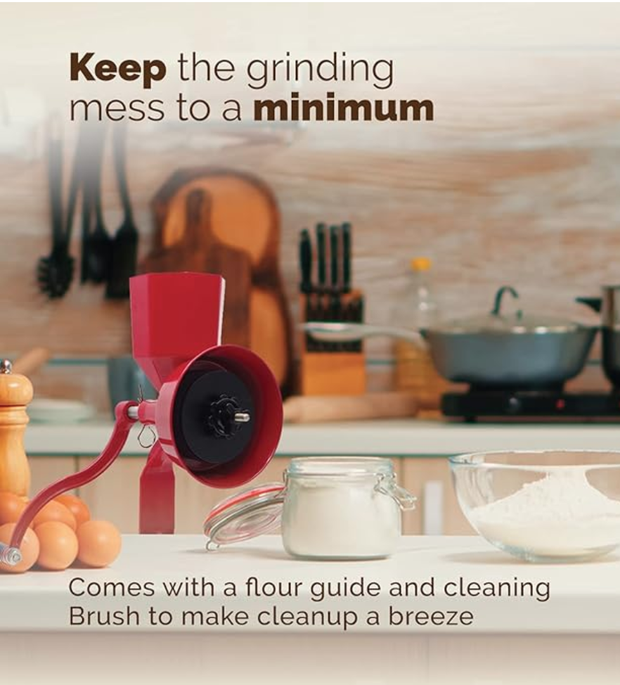 WONDERMILL Manual Hand Grain Mill Red Wonder Junior Deluxe for Dry and Oily Grains - Kitchen Flour Mill, Grain Mill Hand Crank and Spice, Corn, Wheat Stone Mill Grinder