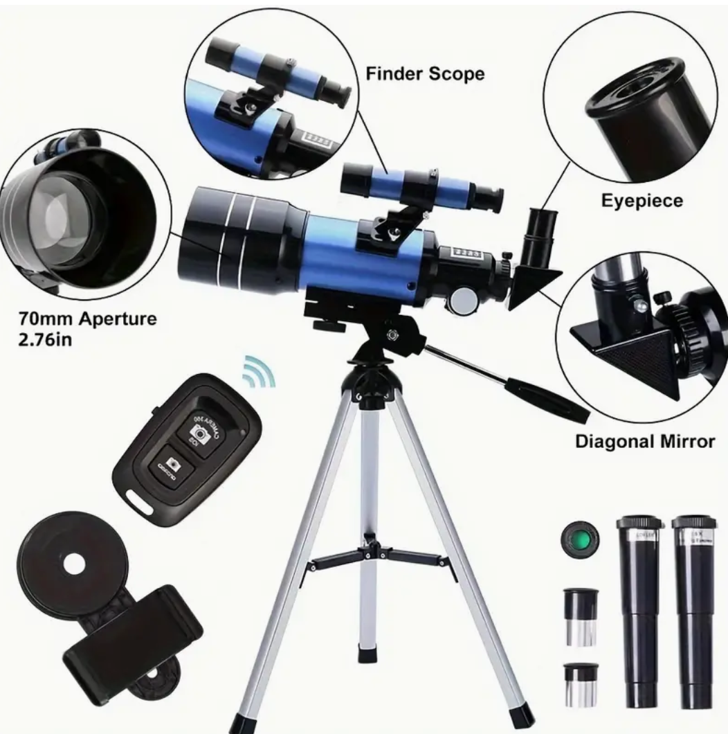 Refractor Telescopes For Astronomy Beginners, 300mm Professional Travel Telescope With A Smartphone Adapter& Wireless Remote