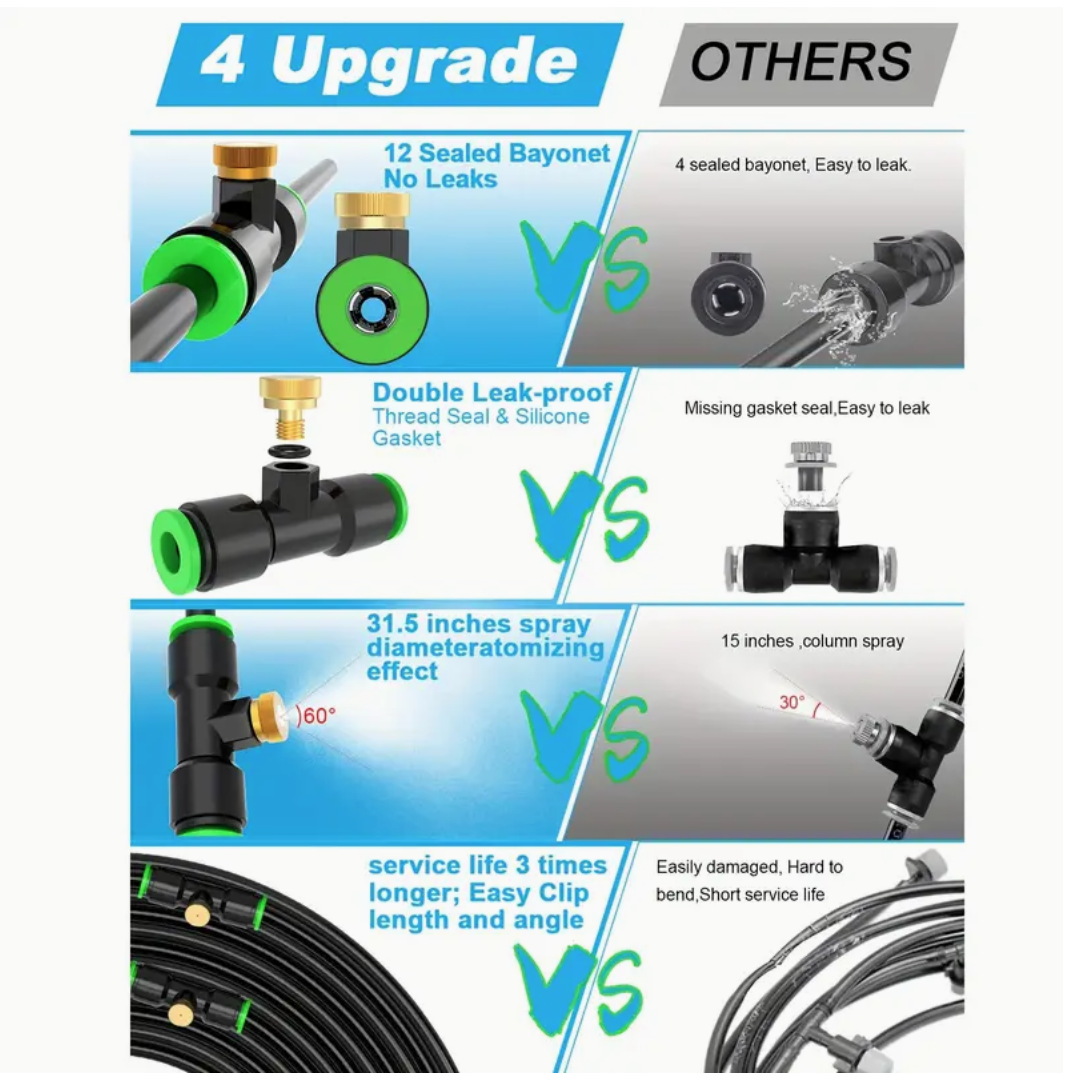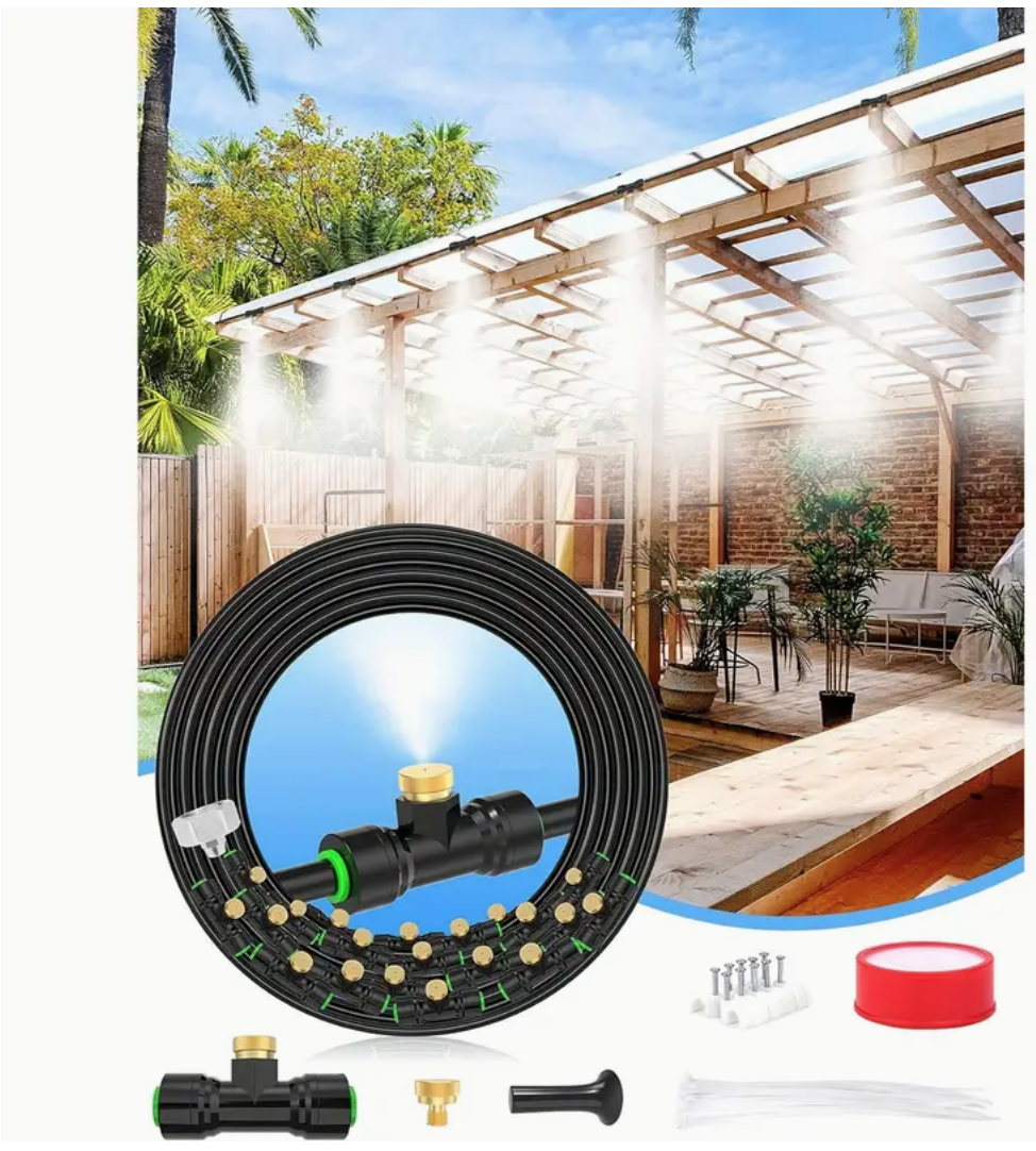 89FT (27.3M) Premium Outdoor Misting System - 34 Brass Mist Nozzles, Detachable 3/4" Brass Adapter, Cooling Solution for Garden, Waterpark, Greenhouse, Backyard, Patio, and Outdoor Spaces - Easy Installation, Durable, and Water-Efficient