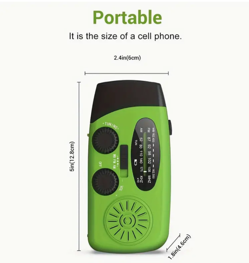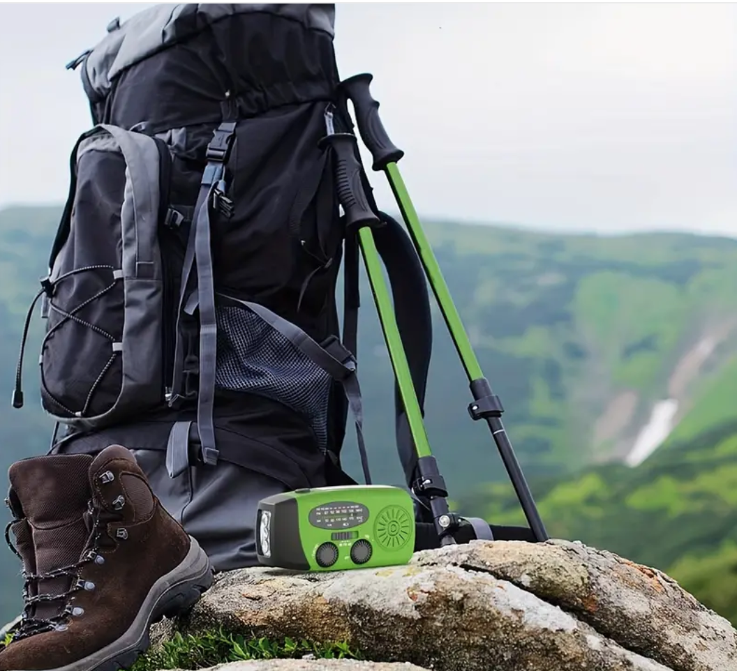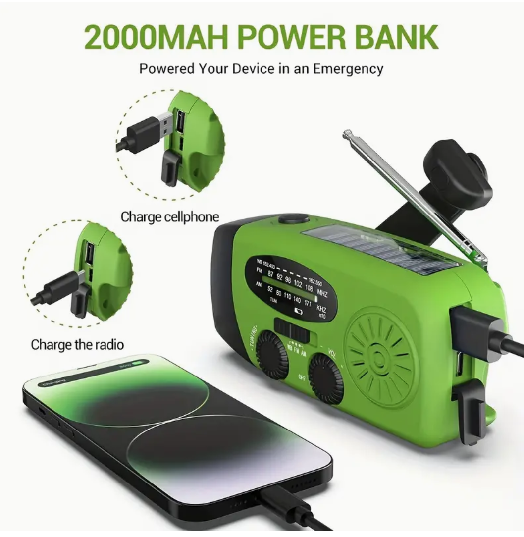 Solar & Hand Crank Emergency Radio-2000mAh Power Bank, Bright 3-LED Flashlight, AM/FM/NOAA, Ideal for Camping-Outdoors