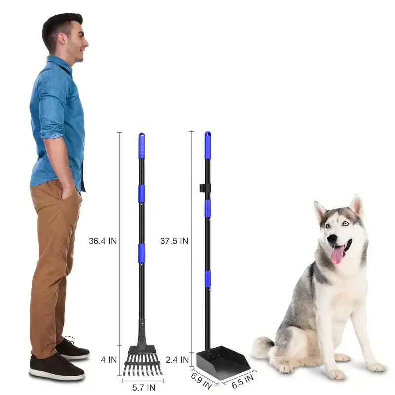 Dog Pooper Scooper Tray And Rake Set With Adjustable Stainless Steel Long Handle